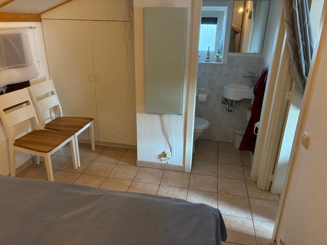 Schlafzimmer Erdgeschoss mit angeschlossener Toilette,