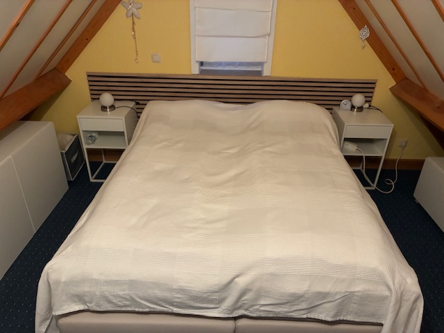 Schlafzimmer oben rechts, mit Dachfenster, und Kaminrohr,